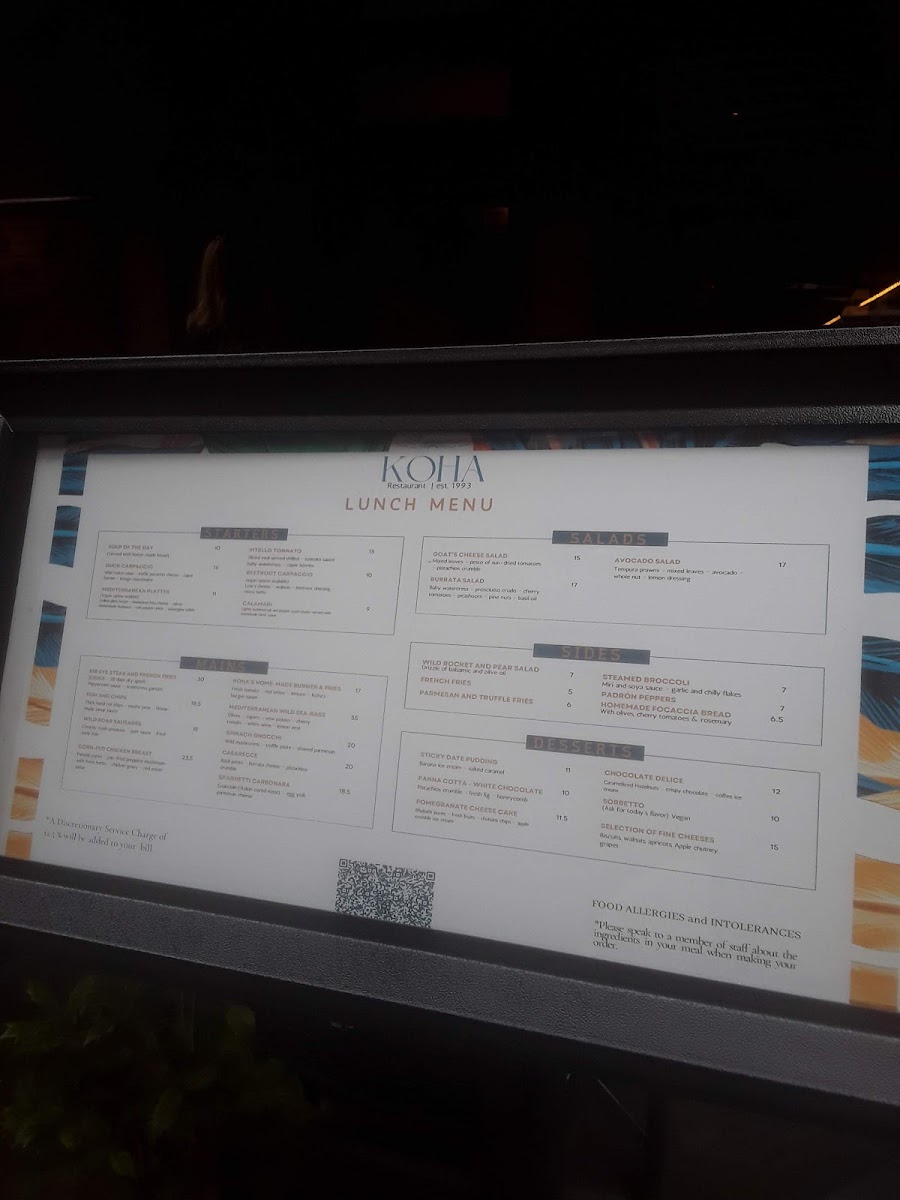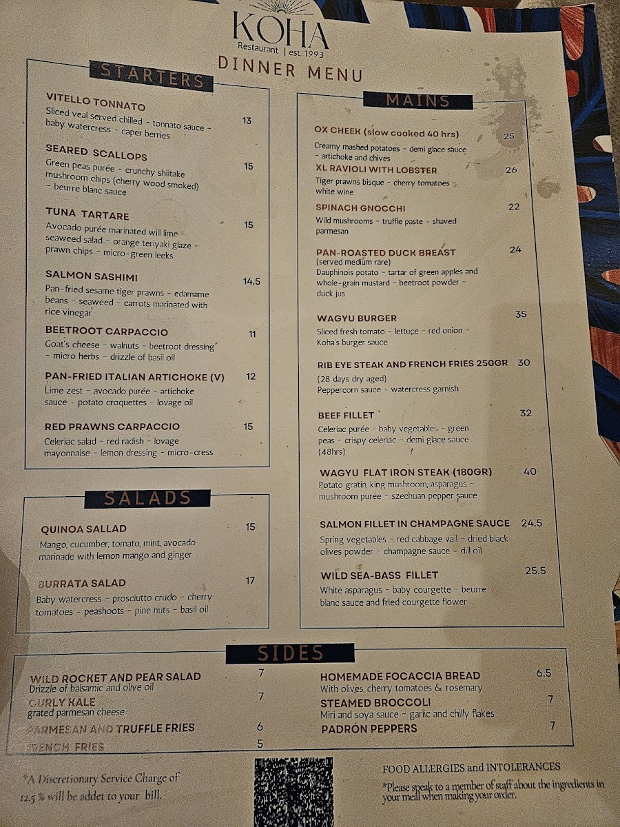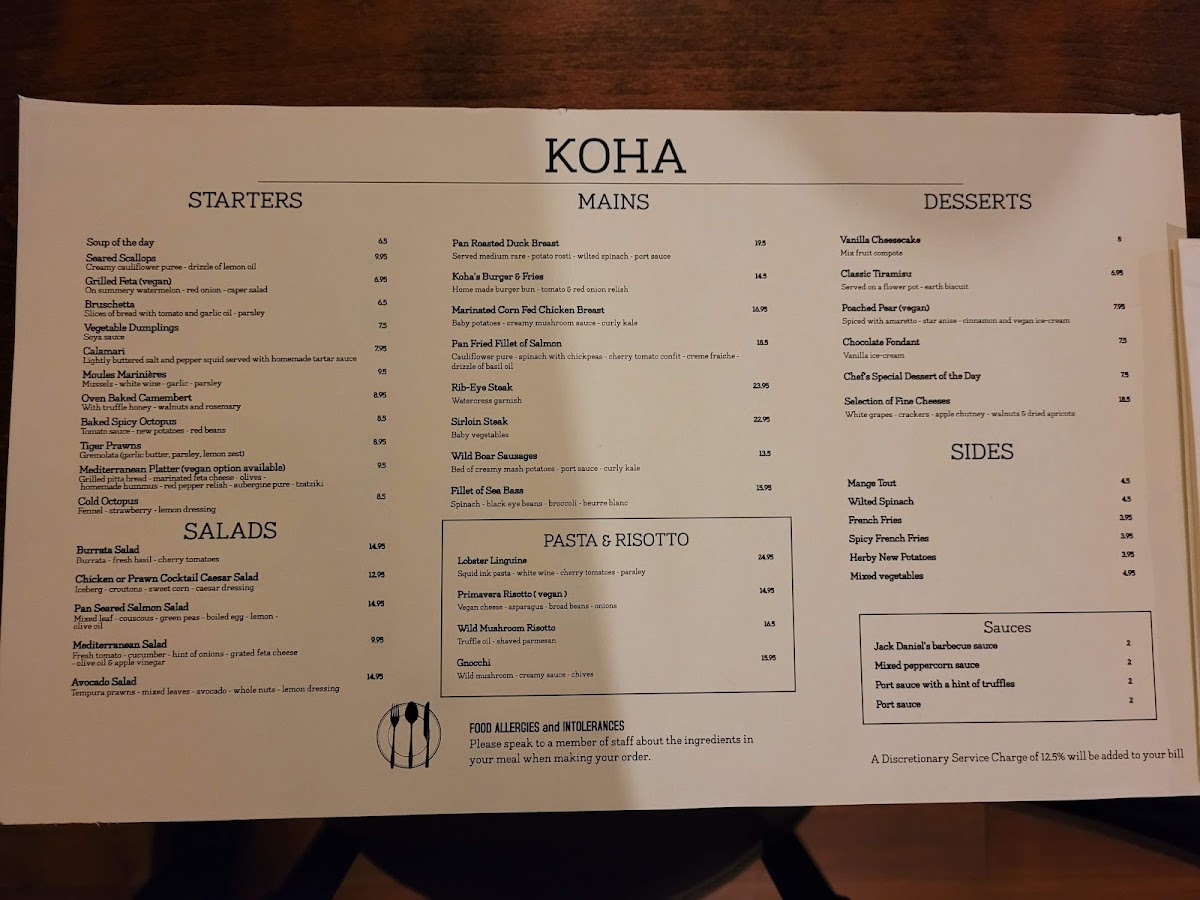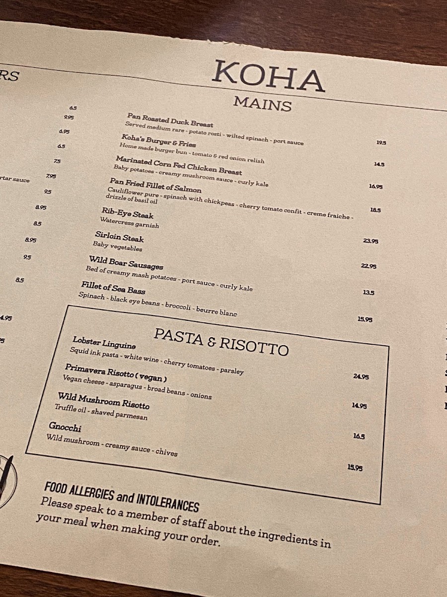 Review of Koha Restaurant & Bar Menu