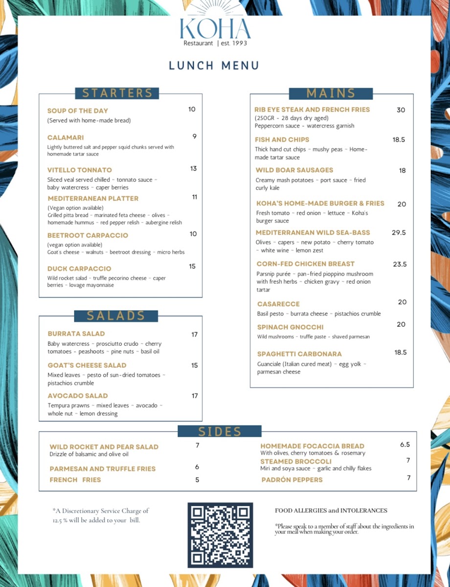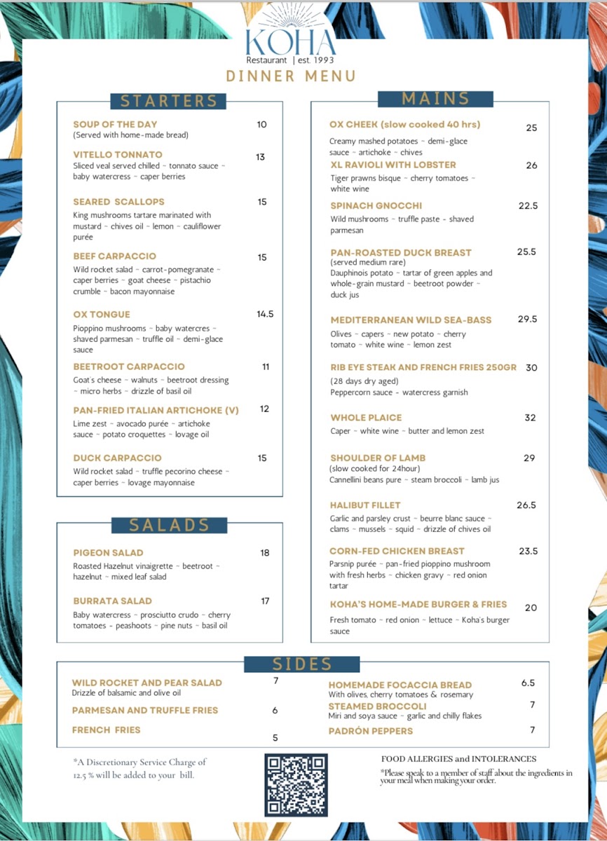 Nestled in the heart of London’s West End, Koha Restaurant & Bar offers a delightful fusion of Mediterranean cuisine and modern British flair. After exploring the Koha Restaurant & Bar Menu in depth, it’s clear that this hidden gem caters to a variety of palates with elegance and sophistication.